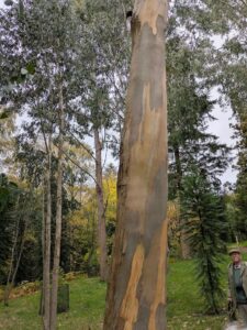 The eucalyptus trees are spectacular, but not to everybody’s taste. The peeling bark strips that forms a carpet around the tree feed the natural forest fires that then burn so hot they endanger all plants except the eucalyptus seedlings.