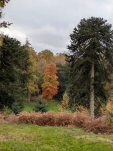 A view down the valley was a delightful sight, with Dawn redwood (Metasequoia glyptostroboides) and Swamp cypress (Taxodium distichum) both showing splendid Autumn colour contrasting with native trees and a group of green Monkey puzzle trees completing the picture.