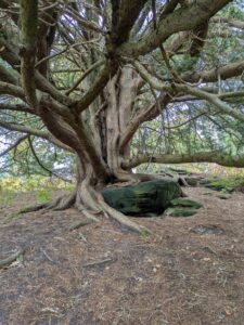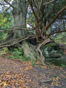 Our trail back towards refreshments took us through a rocky area…and here trees grew as artworks around the outcrops; we all admired the fascinating shapes and the fact that many tree species rose to the challenge of the landscape…